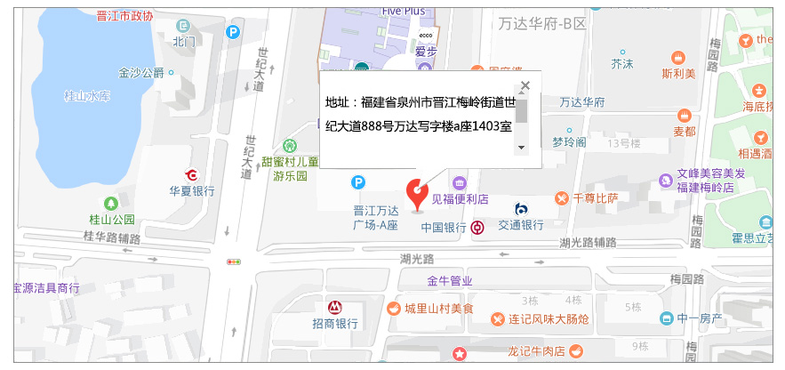地址:晋江市世纪大道888号万达写字楼A栋1403